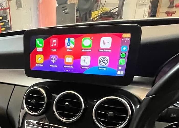 View Pictures >2018 Mercedes C-Class in for a screen upgrade. We removed the factory small display and fitted a ZZ2 factory-style replacement screen, transforming the dash with a larger, modern look. Now fully updated with Apple CarPlay & Android Auto, bringing this C-Class right up to date while keeping that clean OEM finish.